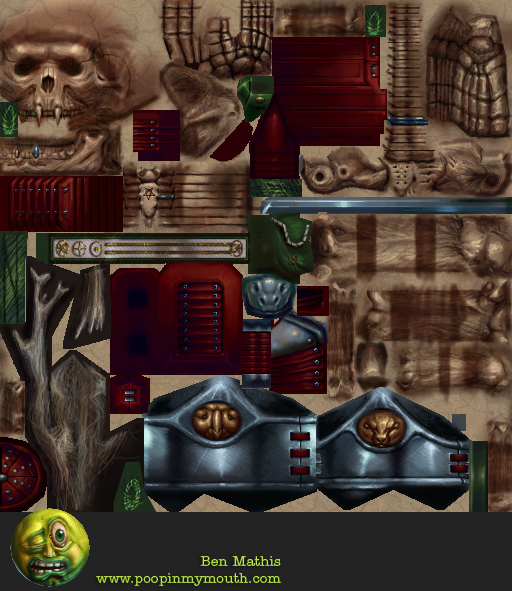 Created for the CGchat vs Polycount Dominance war. 4979 triangles, one 512x512 map, one 512x1024, and one 256x256 texture map. Concept here. The model and texture zip can be downloaded here.