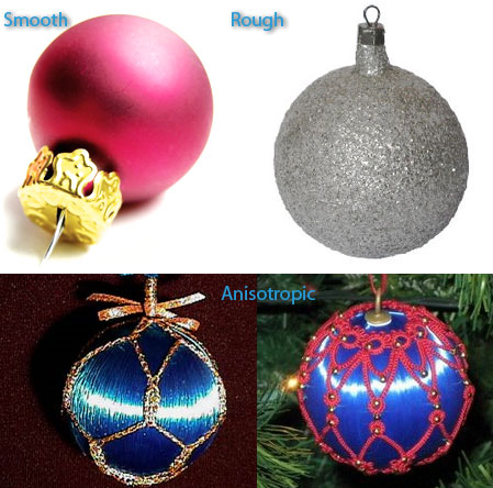 Example image: (notice how the smooth version is one continuous circle that fades out, the rough version is the same shape, but it's broken up into tiny chunks, the anisotropic turns it into a wide band that wraps around the sphere)