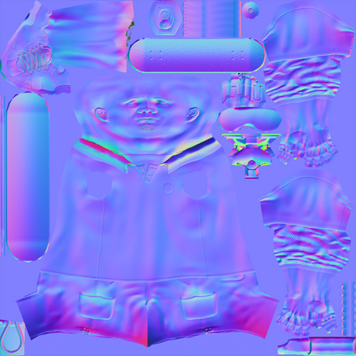 Baked Normals. This layer is the baked normal map, after the clean up stage, but otherwise unaltered.